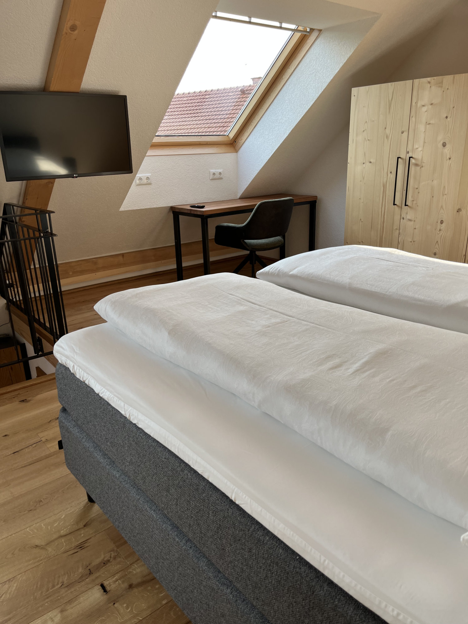 Wenn Sie mit mehr Personen reisen, als in den Ferienwohnungen "Hofgalerie" und "Gartengalerie" Platz finden, können die Doppelzimmer (je ca. 20 m2) im angrenzenden Haupthaus flexibel hinzugebucht werden. Jedes Zimmer ist mit einem Doppelbett, TV und Schreibtisch ausgestattet. Das Badezimmer verfügt über Dusche und WC. So können auch weitere Gäste einen komfortablen Aufenthalt genießen.